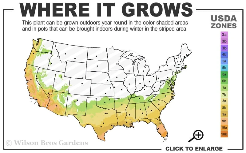 USDA Plant Hardiness Zones:Β 7a-10a Β Find Your Zone